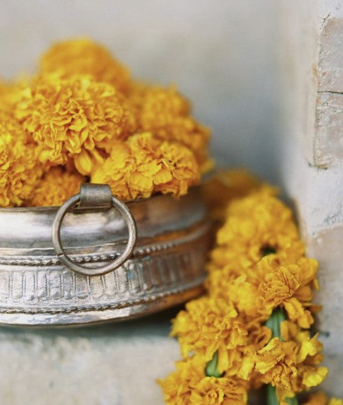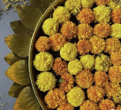 The vibrant color and strong fragrance of marigold flowers are believed to bring positive energy and are seen as a symbol of prosperity and good fortune.
