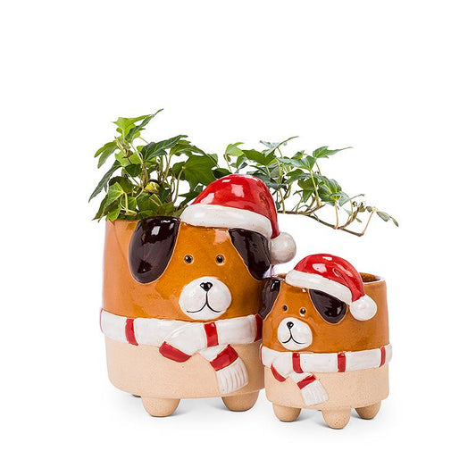 Sold outLg Dog w/Santa Hat Planter-6"H