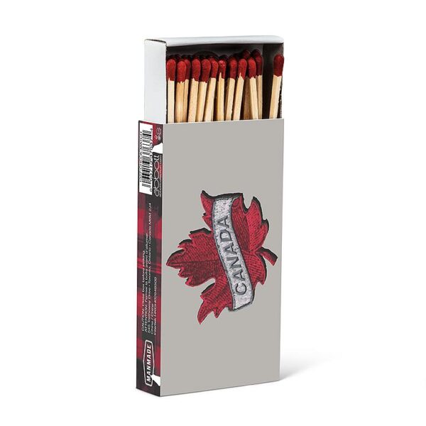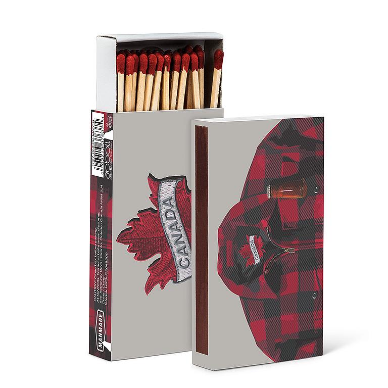 Fire up your fireplace, fire pit or chiminey in classic Canadian style with this cool Check Jacket with Beer Matchbox. This Manmade matchbox – Canadian artist Doug Jackson’s line of products inspired by vintage photographs, maps and ephemera – includes 45 wooden matchsticks, with a box featuring timeless Canadian staples: a buffalo-plaid jacket with a beer in the breast pocket, and a stitched maple-leaf Canada crest on the back. Other ManMade matchboxes also available.