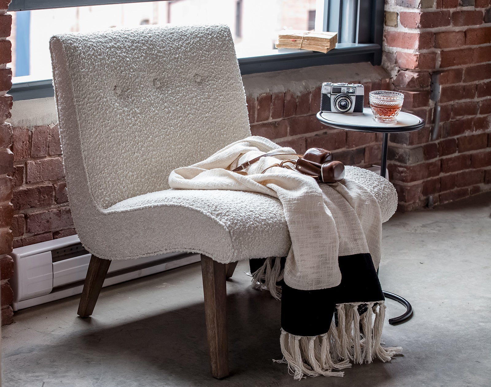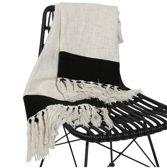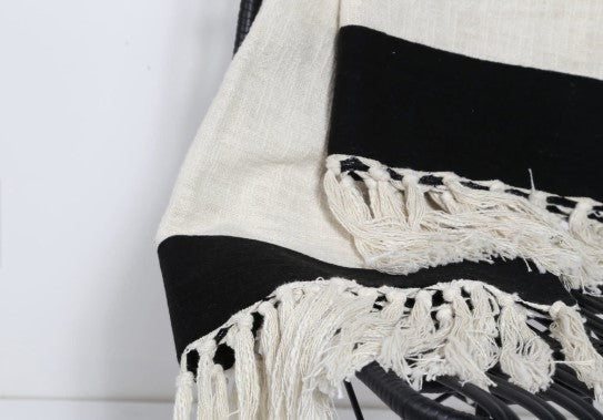 Whether tossed over a chair, a bed, or even taken to the beach, our San Jose Freedom Throw adds a scandi-boho vibe to any space. This chunky black and white striped blanket with hand-tied tassels is made from 100% cotton.